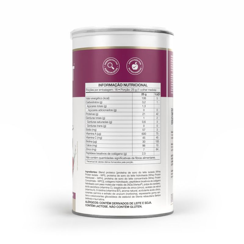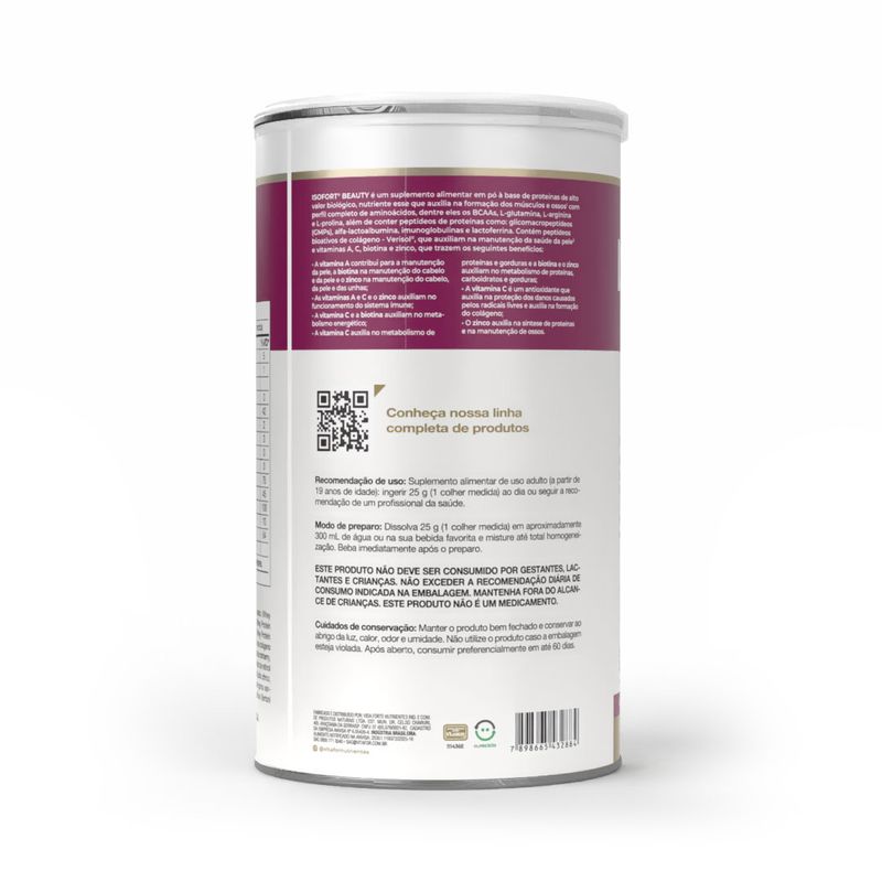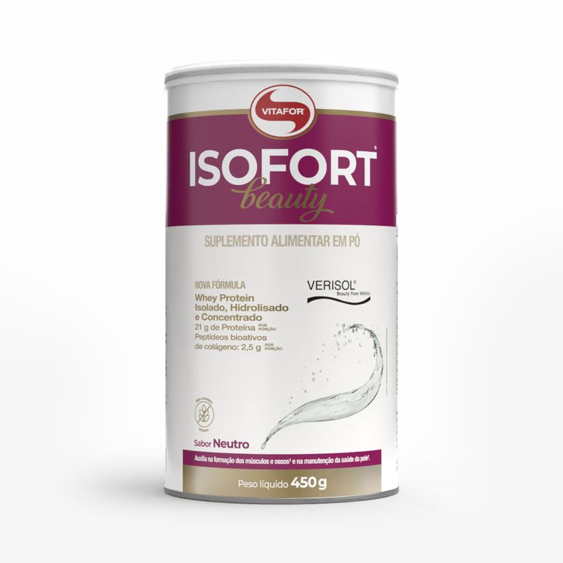 ISOFORT® BEAUTY é um suplemento alimentar em pó à base de proteínas de alto valor biológico, nutriente esse que auxilia na formação dos músculos e ossos com perfil completo de aminoácidos, dentre eles os BCAAs, L-glutamina, L-arginina e L-prolina, além de conter peptídeos de proteínas como: glicomacropeptídeos (GMPs), alfa-lactoalbumina, imunoglobulinas e lactoferrina. Contém peptídeos bioativos de colágeno - Verisol®, que auxiliam na manutenção da saúde da pele e vitaminas A, C, biotina e zinco.