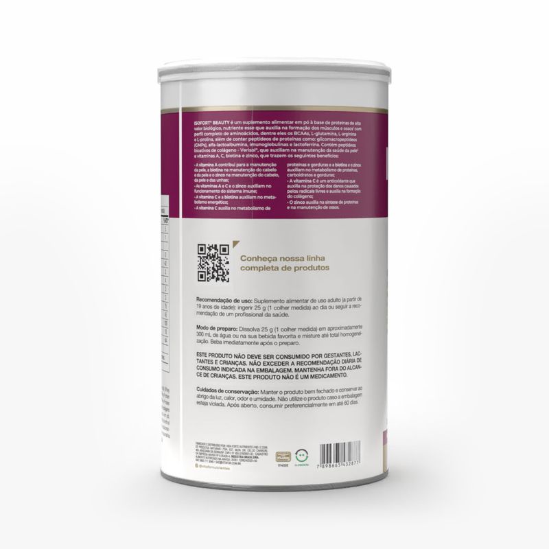 ISOFORT® BEAUTY é um suplemento alimentar em pó à base de proteínas de alto valor biológico, nutriente esse que auxilia na formação dos músculos e ossos com perfil completo de aminoácidos, dentre eles os BCAAs, L-glutamina, L-arginina e L-prolina, além de conter peptídeos de proteínas como: glicomacropeptídeos (GMPs), alfa-lactoalbumina, imunoglobulinas e lactoferrina. Contém peptídeos bioativos de <strong>colágeno - Verisol®</strong>, que auxiliam na manutenção da saúde da pele e vitaminas A, C, biotina e zinco.