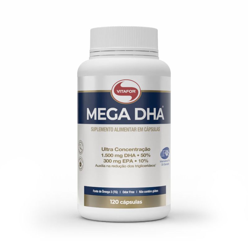 MEGA DHA® é um suplemento alimentar de óleo de peixe em cápsulas. Possui alta concentração de seus derivados, ácido docosahexaenóico (DHA) - 1.500 mg e ácido eicosapentaenóico (EPA) - 300 mg, extraído através de processo de alta tecnologia onde se isenta de impurezas e metais pesados, certificado pelo Programa Internacional de Padrões de Óleo de Peixe (IFOS™).